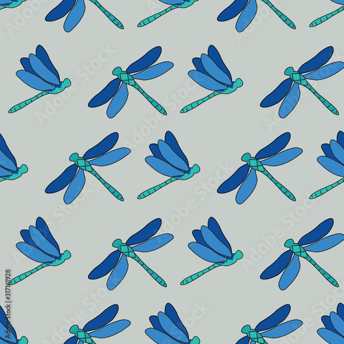 Dragonflies Trellis, repeat vector pattern design of dragonflies flying wings open and closed, surface pattern design