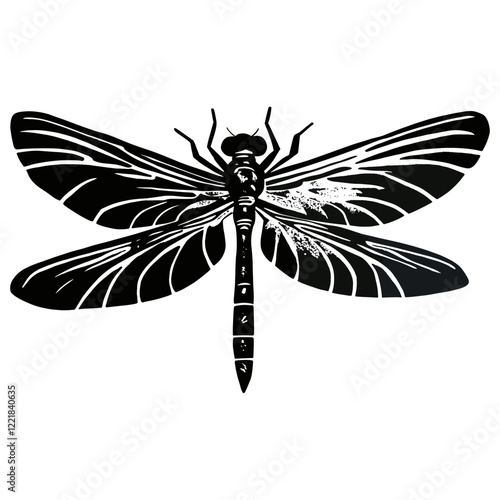 Dragonfly wood block print insect white invertebrate vector