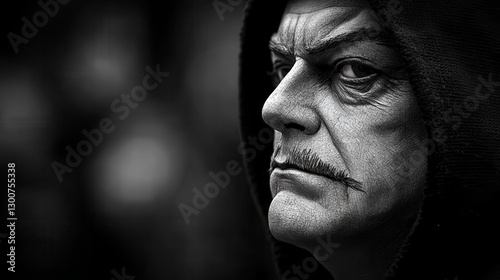 Dramatic Black and White Portrait of a Man with Intense Facial Expression
