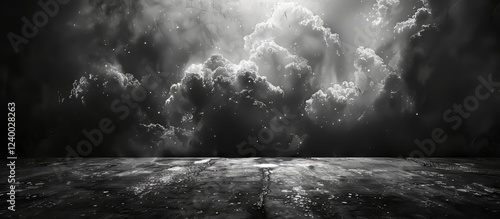 Dramatic Black and White Scene with Stormy Clouds and Dark Atmosphere