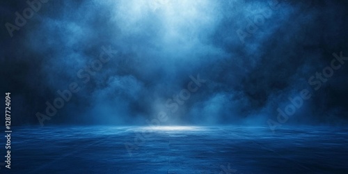 Dramatic Blue Foggy Night Scene Atmospheric Background Dark Moody Sky Empty Ground
