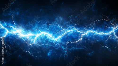 Dramatic blue lightning bolt against a dark background, showcasing the power of nature in a stunning visual display.