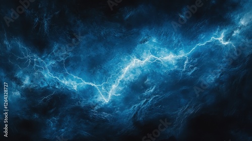 Dramatic blue lightning strikes across a stormy sky. Perfect for illustrating power, energy, or intense weather.