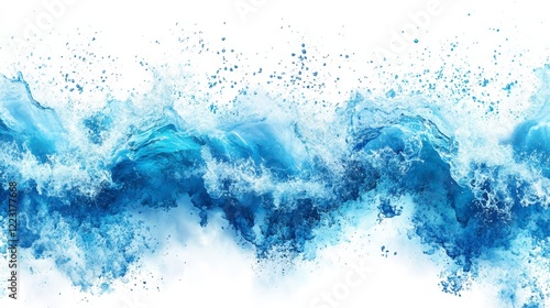 Dramatic Blue Water Waves Splashing Ocean Foam Texture White Background