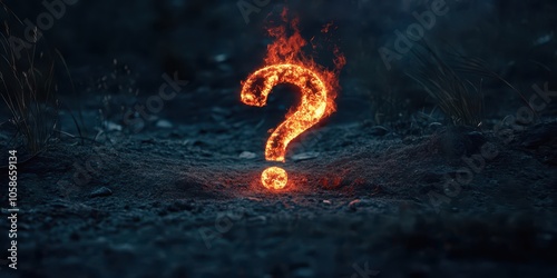 Dramatic burning question mark, high-resolution DSLR photo.