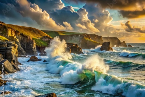 Dramatic Coastal Scene: Ocean Waves Crashing on Southern England Shore
