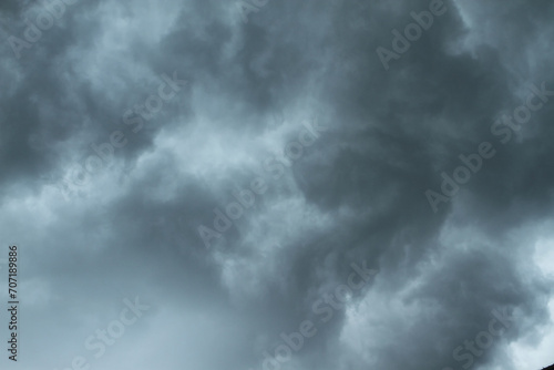 Dramatic, dark, blue cloudy sky overlay, Sky-overlays. Dramatic sky and lightning. Bad weather with dark clouds. Rain And Thunderstorm In Dramatic Sky