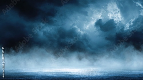 Dramatic Dark Blue Misty Sky Background Perfect for Presentations, Websites, and Designs