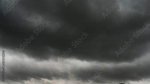 Dramatic dark storm thundercloud rain clouds on black sky background. Dark thunderstorm clouds rainny landscape. Meteorology danger windstorm disaster climate. Dark cloudscape storm disaster gray sky