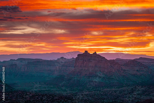 Dramatic Desert Canyon Landscape at Sunrise with Vibrant Sky