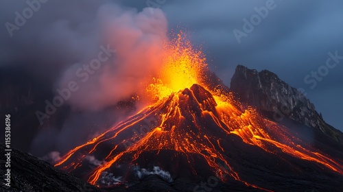 Dramatic Eruption of Active Volcano with Molten Lava and Ash Clouds : Generative AI