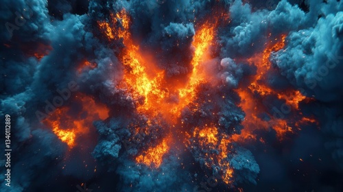 Dramatic Explosion Effect with a Fiery Blast Landscape, Showcasing Intense Flames and Dynamic Fire Dynamics for Powerful Visual Impact