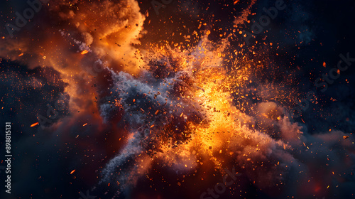 Dramatic Explosion with Intense Flames and Smoke Creating a Powerful Visual Impact