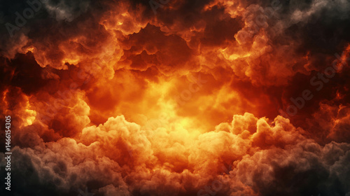 Dramatic Explosive Cloud Formation with Fiery Orange and Red Background in a Dark Atmosphere
