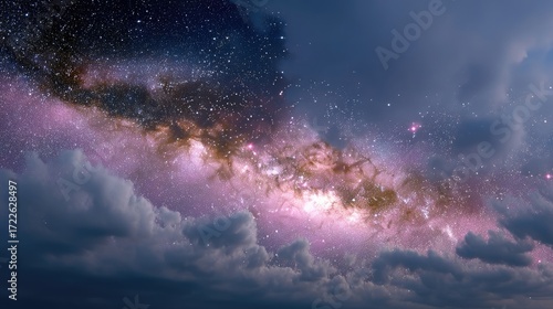 Dramatic Golden Nebula and Starry Field in Deep Space with Dark Moody Clouds and Pink Hues Sparkling Cosmic Wonder Awe Inspiring Celestial Canvas