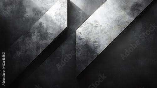 Dramatic grayscale abstract art features sharply angled geometric shapes subtly illuminated by soft light. AI Generated