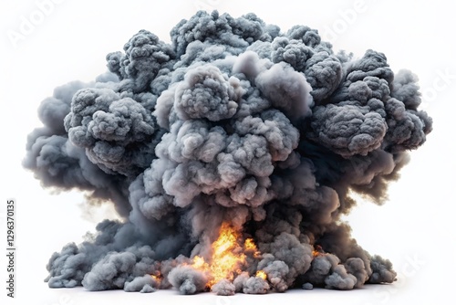 Dramatic Grey Smoke Explosion, Isolated on White Background - Stock Photo