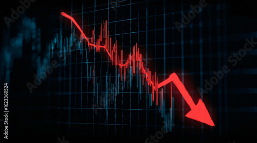 Dramatic Market Downturn: Visualizing a Financial Crisis with a Sharp Decline and Red Arrow Indicator Highlighting Economic Instability
