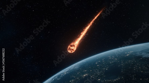Dramatic Meteor Burning as It Enters Earth's Atmosphere with a Streak of Fire and Light
