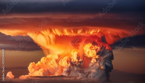 Dramatic Mushroom Cloud Erupting in the Sky During a Nuclear Explosion at Dusk