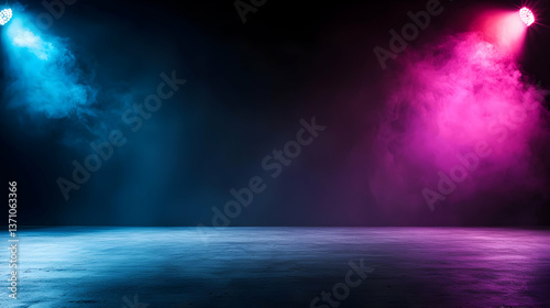 Dramatic Neon Lighting Studio Background With Smoke Effect