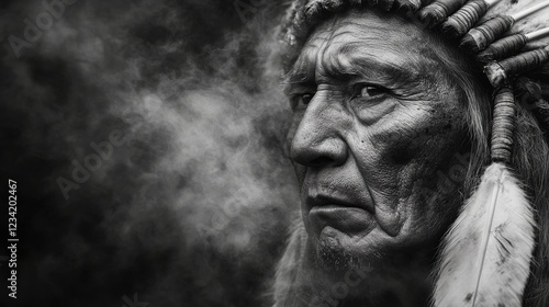 Dramatic portrait of a rugged elder with traditional headdress in arizona
