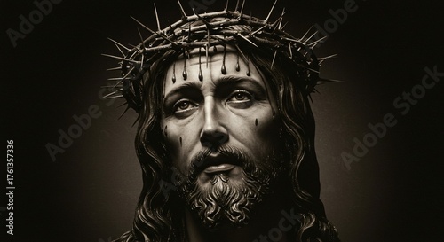 Dramatic Portrait of Jesus Christ Crown of Thorns Religious Art Faith Spirituality Hope Image