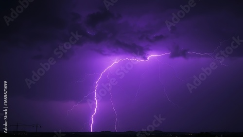 Dramatic purple lightning illuminating a stormy night sky, capturing raw natural energy.