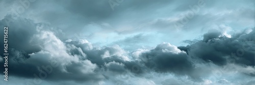 Dramatic Sky with Dark Clouds and Light Blue Atmosphere Background