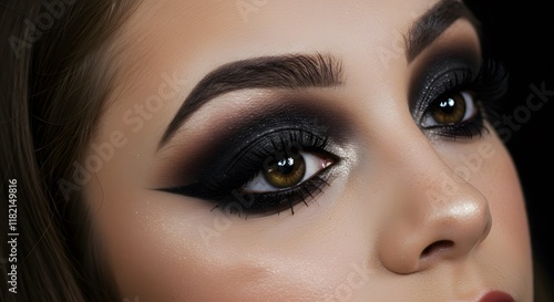 Dramatic Smokey Eye Makeup with Winged Eyeliner and Glitter