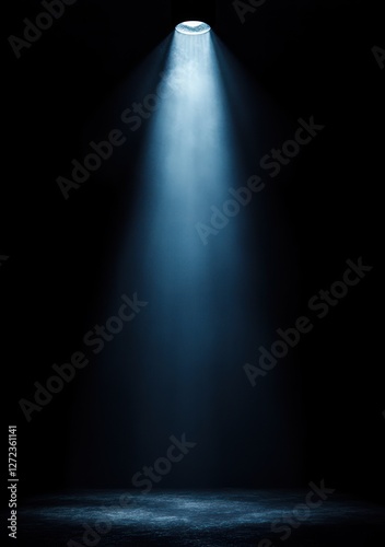 Dramatic Spotlight Beam Illuminating Dark Stage with Chiaroscuro Lighting Effect