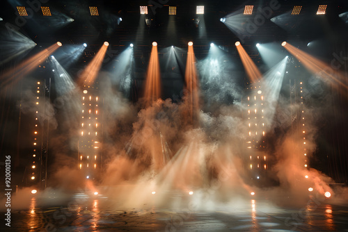 Dramatic Stage with Colorful Lighting and Fog Effects
