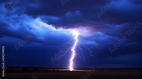 Dramatic Storm with Powerful Lightning Bolt in Moody Sky Landscape