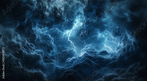 Dramatic stormy sky with lightning bolts amidst dark clouds.