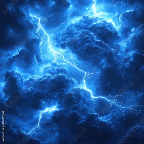 Dramatic Stormy Sky With Vibrant Blue Lightning