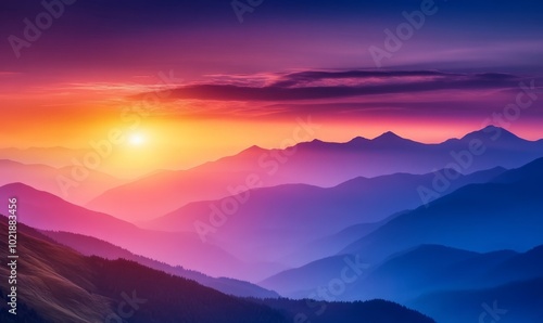 Dramatic Sunrise over the Mountains. Colourful Nature Background