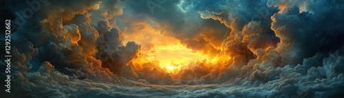 Dramatic Sunset Sky with Vibrant Clouds Illuminated by Golden Sunlight Creating a Stunning Natural Landscape