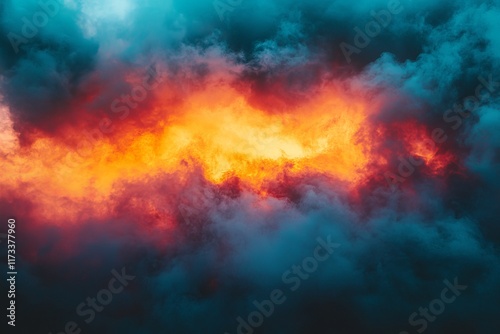 Dramatic sunset view with vibrant colors and swirling clouds illuminating the sky at dusk