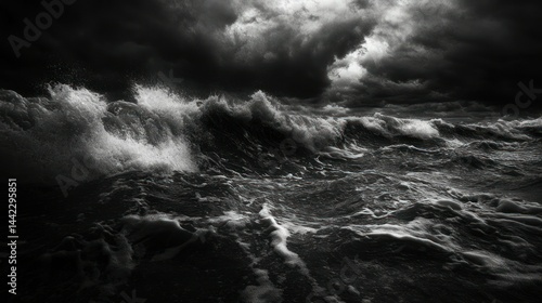 Dramatic view of a turbulent sea with dark and stormy clouds