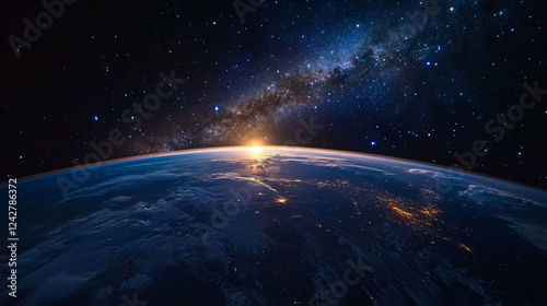 Dramatic view of outer space with a glowing galaxy and countless stars, capturing the vastness and mystery of the universe
