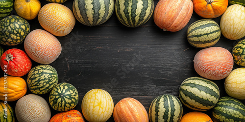 Draufsicht auf einen Rahmen mit Melonen und mit Platz für Text in der Mitte - Werbeschild