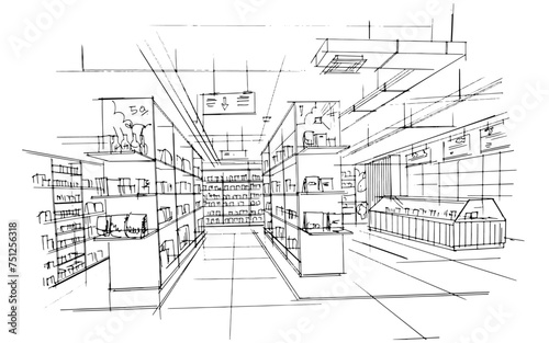 Drawing exterior and interior architectural lines. , Graphic assembly in architecture and interior design work. ,Sketch ideas for interior or exterior designs.