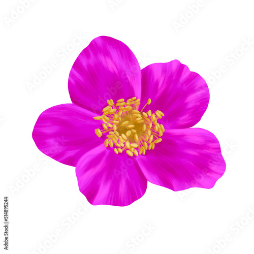 drawing flower of wild rose isolated at white background , hand drawn botanical illustration