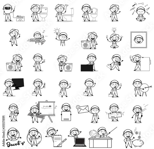 Drawing of Labor Repairman Character - Set of Concepts Vector illustrations