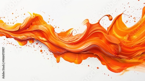 Drawing of Orange Acrylic Paint Ribbon Flowing in Liquid on White Background