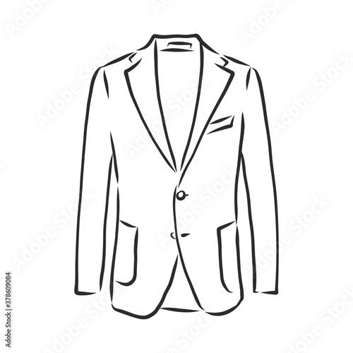 Drawing one continuous line. Men's jacket. Linear style, men's blazer vector sketch illustration