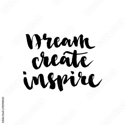 Dream, create, inspire vector lettering illustration. Hand drawn phrase. Handwritten modern brush calligraphy for invitation and greeting card, t-shirt, prints and posters