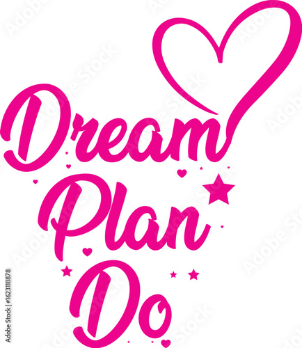 Dream Plan Do – Motivational T-Shirt Design with Heart and Stars in Pink
