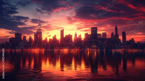 Dreamlike Cityscape with Dramatic Sunset Sky