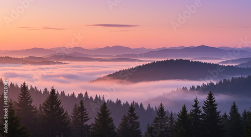 Dreamlike Fog Rolling Over Alpine Valleys at Dawn